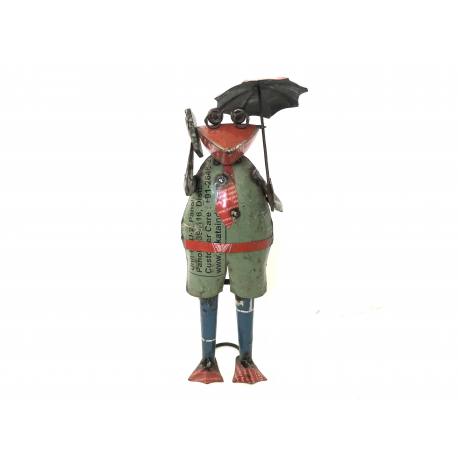 Gave kikker handgemaakt van blijk, ook heel leuk bij de vijver